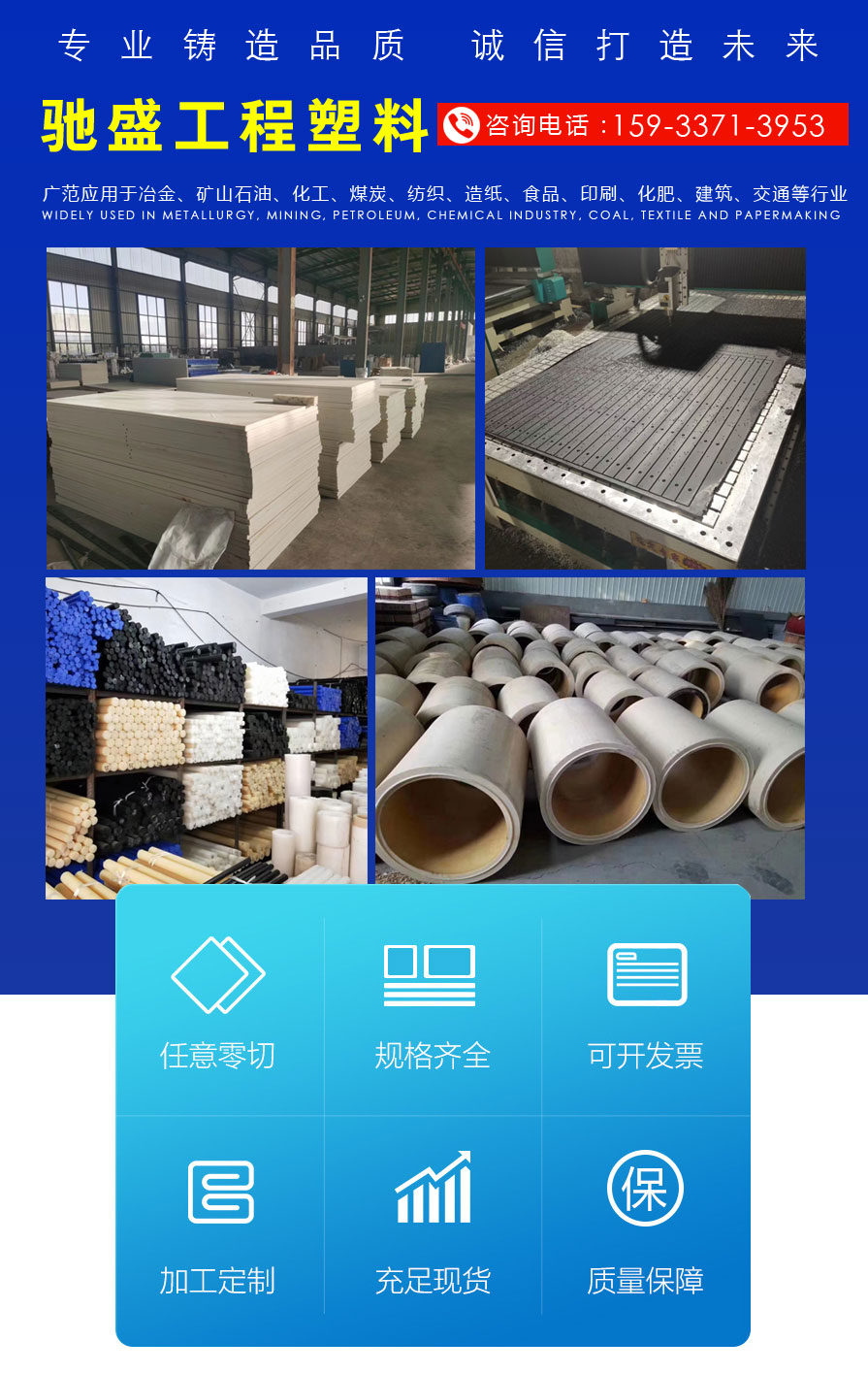 简介:中文称单体浇铸尼龙。“以塑代钢、性能卓越”,用途广泛。它具有重量轻、强度高、自润滑、耐磨、防腐,绝缘等多种性能。是应用广泛的工程塑料,几乎遍布所有的工业领域。